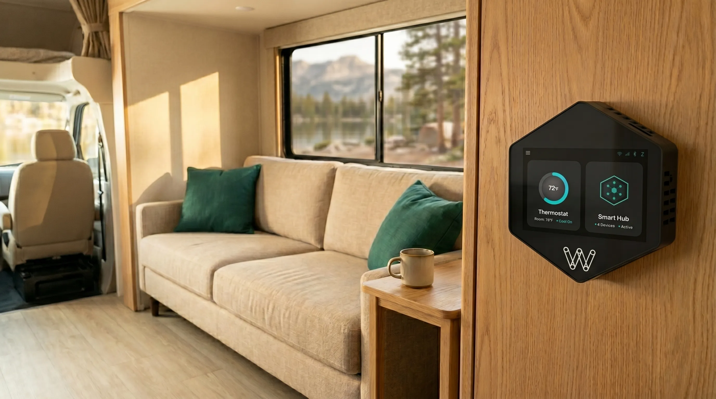 The smart RV thermostat with built-in WiFi and cellular. Replaces Coleman Mach (Airxcel), Dometic, Furrion, GE, and more. Works even when campground WiFi goes down.